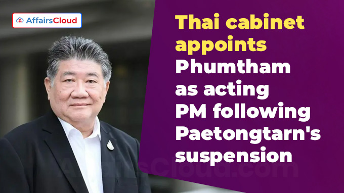 On 4th July 2025, the Cabinet of Thailand appointed Deputy Prime Minister (DPM) and Interior Minister Phumtham Wechayachai as the Acting PM of Thailand, following the suspension of PM Paetongtarn Shinawatra by the Constitutional Court of Thailand (CCT).