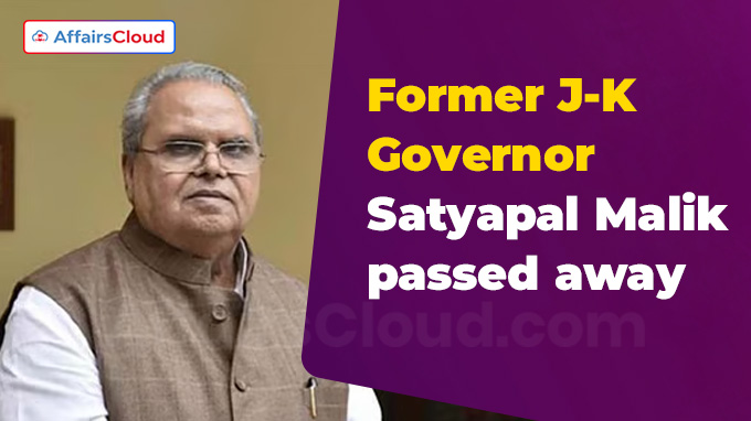On 5th August 2025, Satyapal Malik, former Governor of Jammu and Kashmir (J&K), passed away at the age of 79 in New Delhi, Delhi.