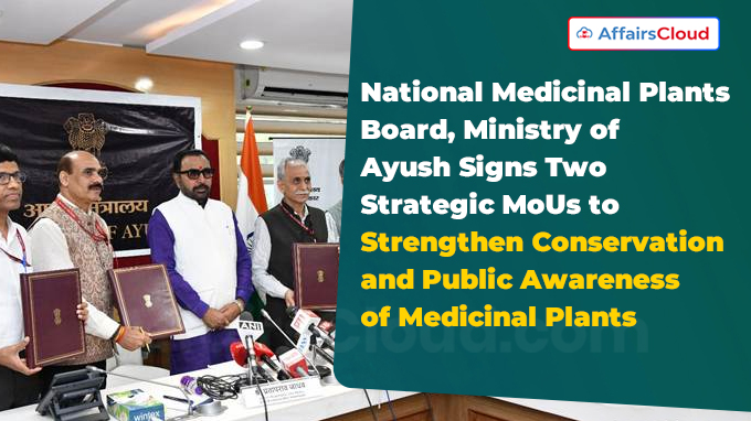 On August 4, 2025, the National Medicinal Plants Board (NMPB) under the Ministry of AYUSH (Ayurveda, Yoga & Naturopathy, Unani, Siddha, and Homeopathy), signed a Memorandum of Understanding (MoU) with Ish Ved-Bioplants Venture along with a tripartite agreement involving the All India Institute of Ayurveda (AIIA) and All India Institute of Medical Science (AIIMS) – New Delhi to strengthen the conservation of medicinal plants.