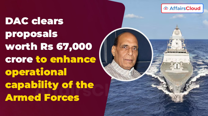 On August 5, 2025, the Defence Acquisition Council (DAC), chaired by Union Minister Rajnath Singh, Ministry of Defence (MoD), approved proposals worth Rs.67,000 crores to enhance the operational capability of the Indian Armed Forces.
