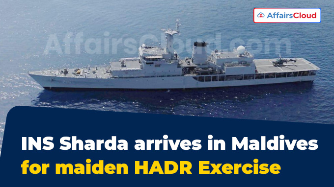 INS Sharda Participates Inaugural India-Maldives HADR Exercise in Maldives In May 2025, Indian Naval Ship (INS) Sharda arrived at Maafilaafushi Atoll in Maldives to participate in the inaugural Humanitarian Assistance and Disaster Relief (HADR) exercise scheduled from May 4-10, 2025.