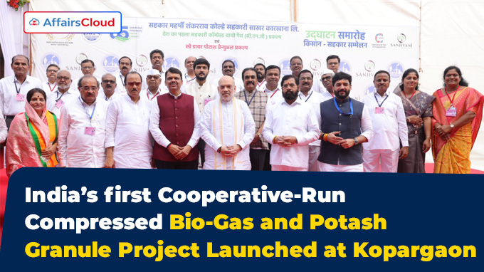 On October 5, 2025, Union Minister Amit Shah, Ministry of Home Affairs (MHA) and Ministry of Cooperation, inaugurated India’s first cooperative multi-feed Compressed Biogas (CBG) plant and Potash Granule production facility at the Maharshi Shankarrao Kolhe Sahakari Sakhar Karkhana Limited, a cooperative sugar Factory, in Ahilyanagar, Maharashtra.