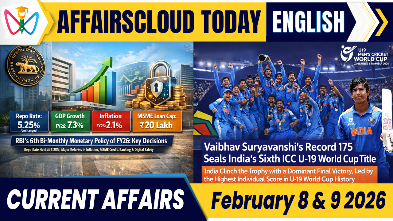 We are here for you to provide the important Recent and Latest Current Affairs February 8 & 9 2026, which have unique updates of Latest Current Affairs 2026 events from all newspapers such as The Hindu, The Economic Times, PIB, Times of India, PTI, Indian Express, Business Standard and all Government official websites.