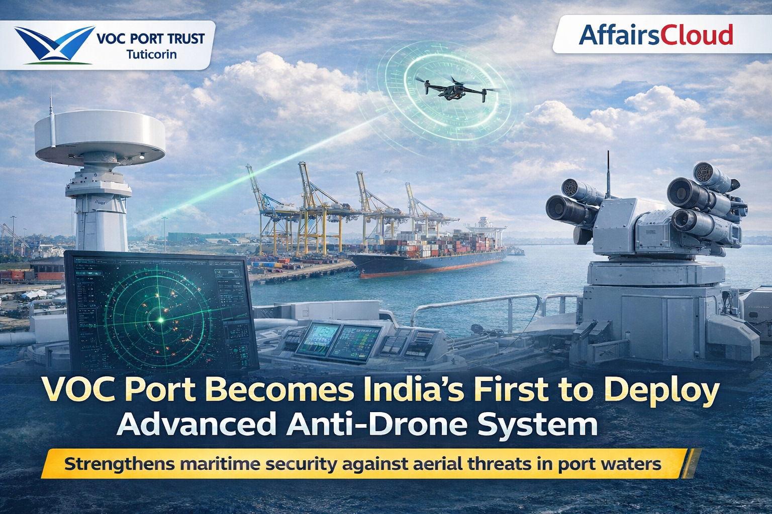 In February 2026, V.O. Chidambaranar (VOC)Port located in Thoothukudi, Tamil Nadu (TN), becomes the 1st port in India to initiate installation of an advanced ‘Anti-Drone System’, marking a major step in the protection of critical port infrastructure.