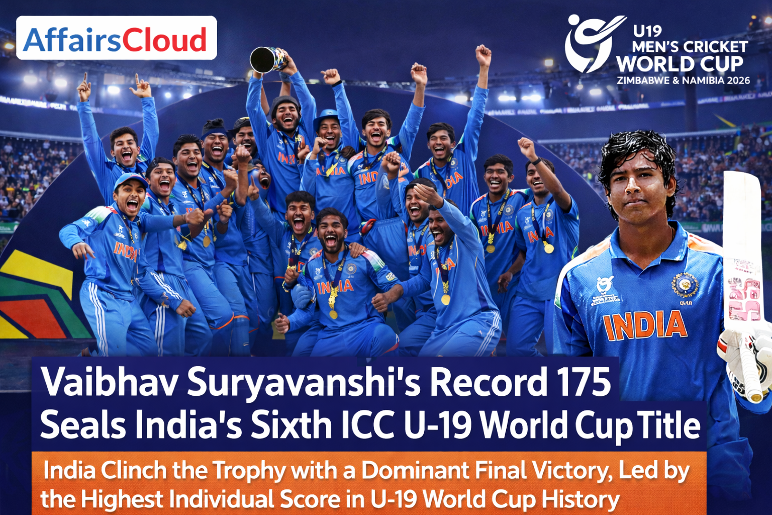 In February 2026, India’s Under-19(U19) men’s cricket team clinched their record sixth International Cricket Council (ICC) U19 Men’s Cricket World Cup(CWC) title by defeating England by 100 runs in the final at Harare Sports Club, Zimbabwe, as the 16th edition of the tournament was held from 15 January to 6 February 2026 across Zimbabwe and Namibia.