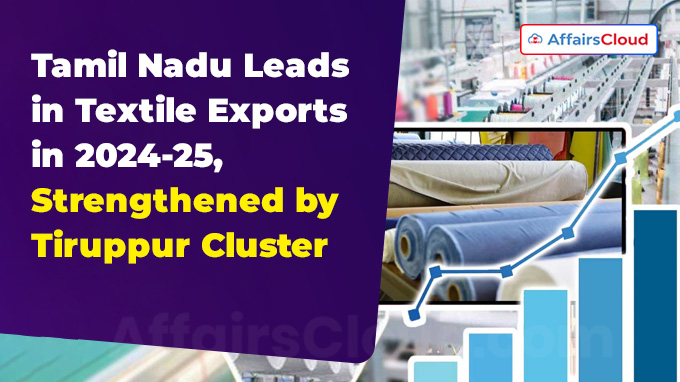 TN Tops India’s Textile Exports in FY25 with USD 7.99 Billion ContributionIn April 2025, Tamil Nadu (TN) emerged as India’s leading textile exporter in Financial Year 2024-25 (FY25), contributing USD 7.99 billion, which accounts for 26.81% of India’s total textile exports valued at USD 36.61 billion.