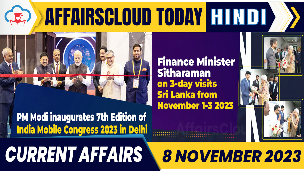 लो दोस्तों, affairscloud.com में आपका स्वागत है। हम यहां आपके लिए 8 नवंबर 2023 के महत्वपूर्ण करंट अफेयर्स को विभिन्न अख़बारों जैसे द हिंदू, द इकोनॉमिक टाइम्स, PIB, टाइम्स ऑफ इंडिया, इंडिया टुडे, इंडियन एक्सप्रेस, बिजनेस स्टैंडर्ड,जागरण से चुन करके एक अनूठे रूप में पेश करते हैं। हमारे Current Affairs से आपको बैंकिंग, बीमा, UPSC, SSC, CLAT, रेलवे और अन्य सभी प्रतियोगी परीक्षाओं में अच्छे अंक प्राप्त करने में मदद मिलेगी