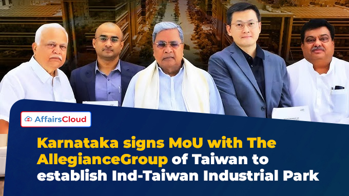 Government of Karnataka Signs MoU with Allegiance Group to Set Up ITIP in KarnatakaIn December 2025, Government of Karnataka signed a Memorandum of Understanding (MoU) with Allegiance International Company Limited (Allegiance Group) to establish an India-Taiwan Industrial Technology Park (ITIP), with a budget outlay of Rs.1,000 crores, in Karnataka, aimed at creating approximately 800 direct jobs by 2030, at an event in Bengaluru, Karnataka.