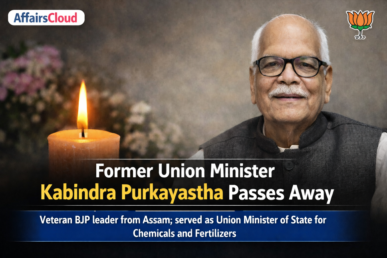 On 7th January 2026, veteran Bharatiya Janata Party (BJP) leader and former Union Minister of State (MoS) Kabindra Purkayastha, Ministry of Communications, passed away at the age of 94 in Silchar, Assam.