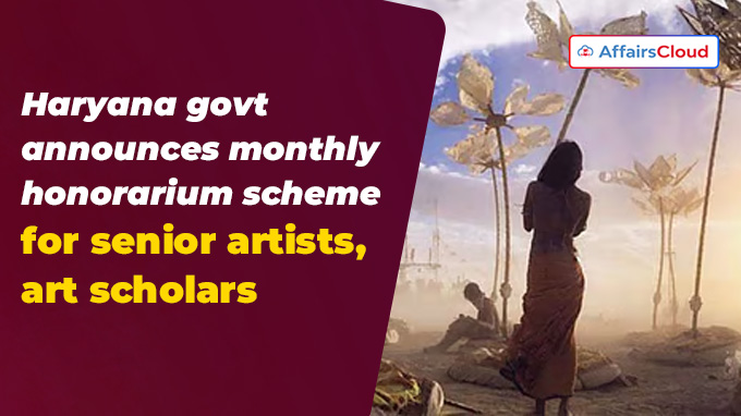 Haryana Govt Announces ‘Pandit Lakhmi Chand Kalakar Samajik Samman Yojana’ for Senior Artistes, Art scholarsIn May 2025, Haryana Chief Minister (CM) Nayab Singh Saini led state cabinet, has decided to implement a new scheme titled “Pandit Lakhmi Chand Kalakar Samajik Samman Yojana”, for the welfare of the senior artists and scholars of the state.