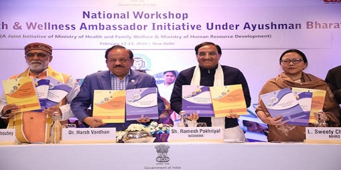 On February 12, 2020, Union Minister of Human Resource Development, Ramesh Pokhriyal “Nishank”, Union Minister of Health & Family Welfare, Dr. Harsh Vardhan jointly released curriculum for School Health Ambassador Initiative under Ayushman Bharat’s School Health Programme (SHP)during an occasion in New Delhi. The objective behind this is to increase knowledge along with promoting consciousness about good health among students or children.