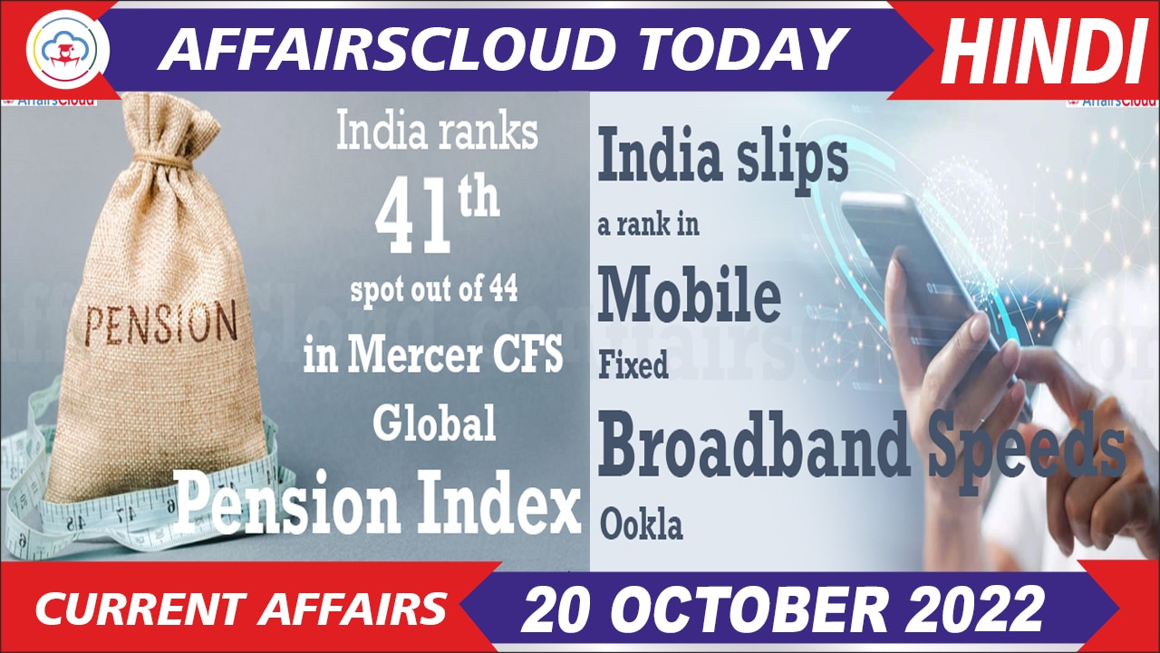 हैलो दोस्तों, affairscloud.com में आपका स्वागत है। हम यहां आपके लिए 20 अक्टूबर 2022 के महत्वपूर्ण करंट अफेयर्स को विभिन्न अख़बारों जैसे द हिंदू, द इकोनॉमिक टाइम्स, पीआईबी, टाइम्स ऑफ इंडिया, इंडिया टुडे, इंडियन एक्सप्रेस, बिजनेस स्टैंडर्ड,जागरण से चुन करके एक अनूठे रूप में पेश करते हैं। हमारे Current Affairs से आपको बैंकिंग, बीमा, यूपीएससी, एसएससी, सीएलएटी, रेलवे और अन्य सभी प्रतियोगी परीक्षाओं में अच्छे अंक प्राप्त करने में मदद मिलेगी