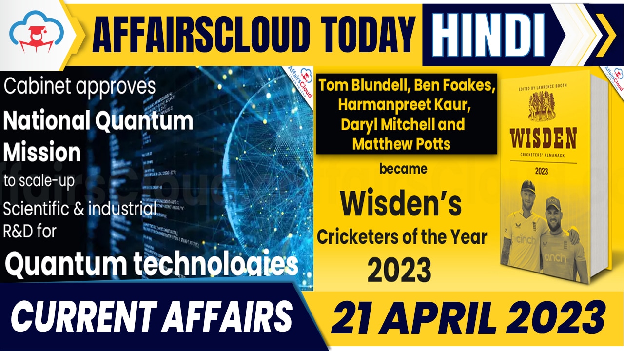 लो दोस्तों, affairscloud.com में आपका स्वागत है। हम यहां आपके लिए 21 अप्रैल 2023 के महत्वपूर्ण करंट अफेयर्स को विभिन्न अख़बारों जैसे द हिंदू, द इकोनॉमिक टाइम्स, पीआईबी, टाइम्स ऑफ इंडिया, इंडिया टुडे, इंडियन एक्सप्रेस, बिजनेस स्टैंडर्ड,जागरण से चुन करके एक अनूठे रूप में पेश करते हैं। हमारे Current Affairs से आपको बैंकिंग, बीमा, यूपीएससी, एसएससी, सीएलएटी, रेलवे और अन्य सभी प्रतियोगी परीक्षाओं में अच्छे अंक प्राप्त करने में मदद मिलेगी