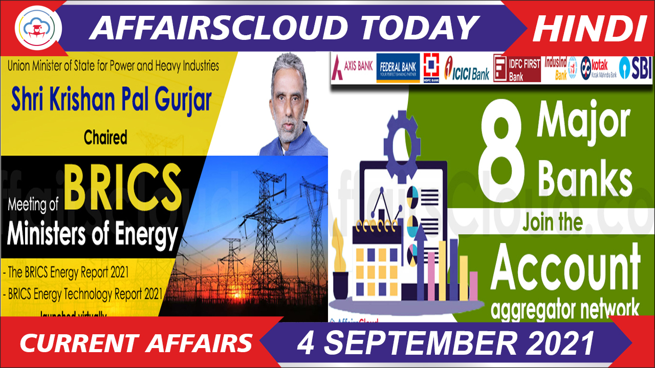 हैलो दोस्तों, affairscloud.com में आपका स्वागत है। हम यहां आपके लिए 4 सितंबर 2021 के महत्वपूर्ण करंट अफेयर्स को विभिन्न अख़बारों जैसे द हिंदू, द इकोनॉमिक टाइम्स, पीआईबी, टाइम्स ऑफ इंडिया, इंडिया टुडे, इंडियन एक्सप्रेस, बिजनेस स्टैंडर्ड,जागरण से चुन करके एक अनूठे रूप में पेश करते हैं। हमारे Current Affairs से आपको बैंकिंग, बीमा, यूपीएससी, एसएससी, सीएलएटी, रेलवे और अन्य सभी प्रतियोगी परीक्षाओं में अच्छे अंक प्राप्त करने में मदद मिलेगी