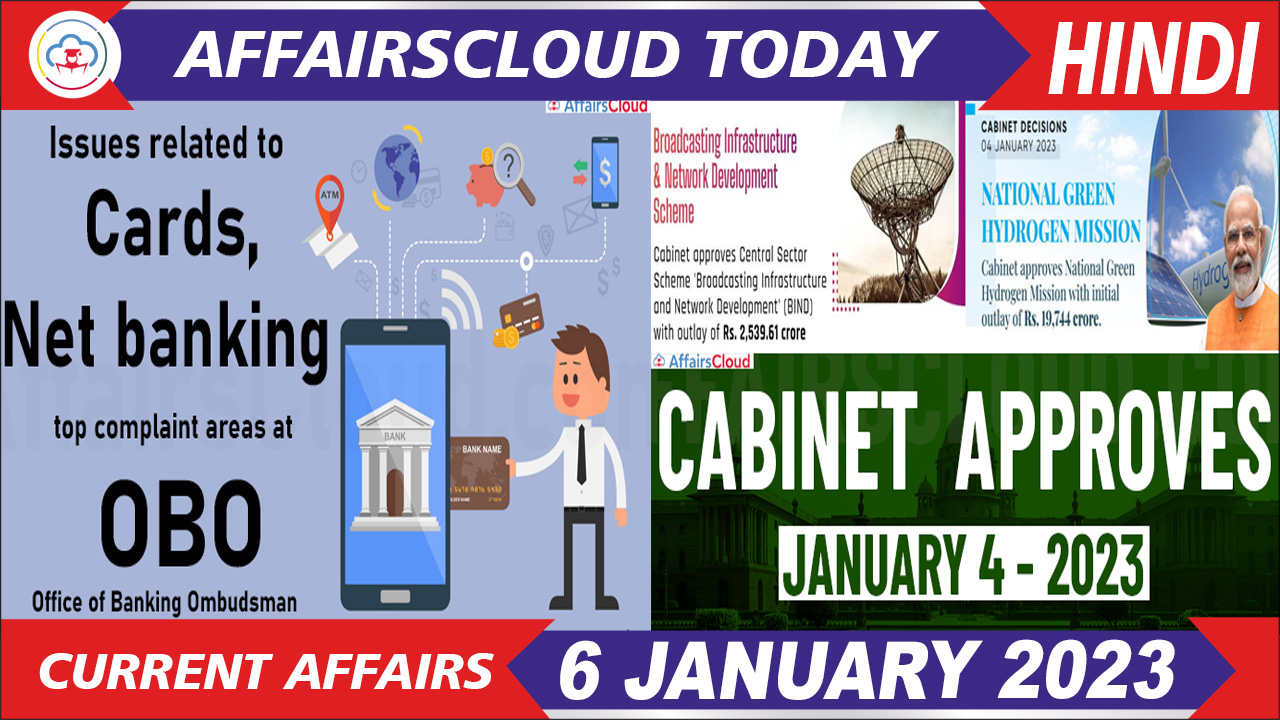 हैलो दोस्तों, affairscloud.com में आपका स्वागत है। हम यहां आपके लिए 6 जनवरी 2023 के महत्वपूर्ण करंट अफेयर्स को विभिन्न अख़बारों जैसे द हिंदू, द इकोनॉमिक टाइम्स, पीआईबी, टाइम्स ऑफ इंडिया, इंडिया टुडे, इंडियन एक्सप्रेस, बिजनेस स्टैंडर्ड,जागरण से चुन करके एक अनूठे रूप में पेश करते हैं। हमारे Current Affairs से आपको बैंकिंग, बीमा, यूपीएससी, एसएससी, सीएलएटी, रेलवे और अन्य सभी प्रतियोगी परीक्षाओं में अच्छे अंक प्राप्त करने में मदद मिलेगी