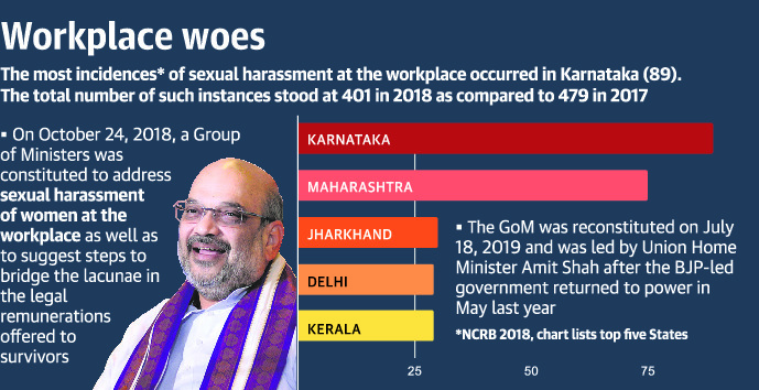 19 जनवरी, 2020 को केंद्रीय गृह राज्य मंत्री (एमओएचए) श्री अमित शाह की अध्यक्षता में मंत्रियों के समूह ने कार्यस्थल पर यौन उत्पीड़न को रोकने के लिए कानूनी ढांचे को और मजबूत करने के लिए गठित किया, अब इसके लिए सिफारिशों को अंतिम रूप दे दिया है। संक्षेप में सिफारिशें इस प्रकार हैं: