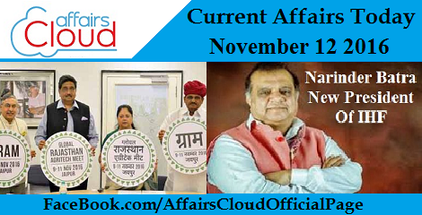 i. A three-day international event of ‘Global Rajasthan Agritech Meet (GRAM)’ was conferred at the Jaipur Exhibition and Convention Center (JECC) at Sitapura in Jaipur from 9 to 11 November 2016 to highlight the best global practices and technologies suitable for farmers.
