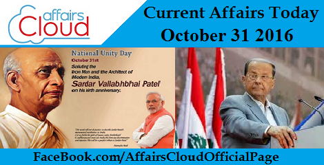 i. Prime Minister Narendra Modi honoured Sardar Vallabhbhai Patel on the occasion of his 141st birth anniversary in New Delhi on October 31, 2016.