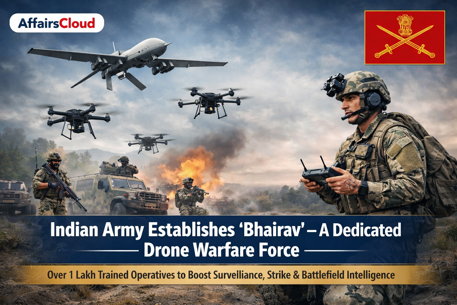 In January 2026, the Indian Army (IA) announced the creation of a modern warfare force named ‘Bhairav’, aimed at enhancing India’s combat capabilities by integrating drone technology and establishing a pool of over 1 lakh trained drone operatives.