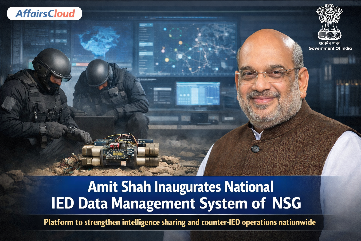 In January 2026, Union Minister Amit Shah, Ministry of Home Affairs (MHA) and Ministry of Cooperation, inaugurated the National Improvised Explosive Device (IED) Data Management System (NIDMS) of the National Security Guard (NSG) through video conferencing in New Delhi (Delhi).