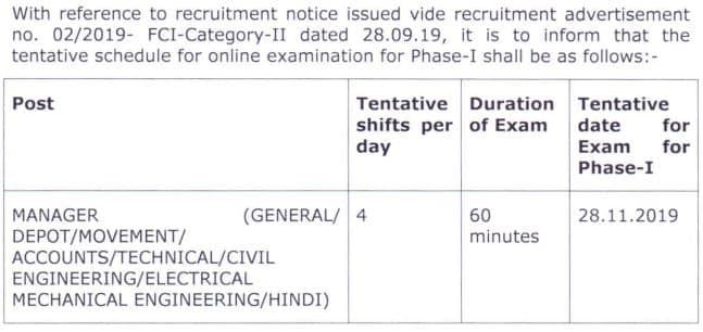 FCI has announced the dates for the Preliminary Examination of Manager for all the Zones. Now the Preliminary Examination for all zones will be held on the 28th of November 2019.