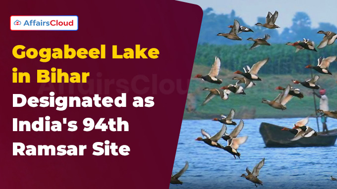 In October 2025, Union Minister Bhupendra Yadav, Ministry of Environment, Forest and Climate Change (MoEFCC) announced that Gogabeel Lake in Katihar district of Bihar has been officially designated as Ramsar Convention Sites of International Importance, bringing the total number of internationally recognised Ramsar sites in India to 94.