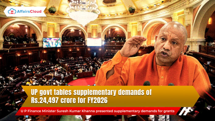 On December 22 2025, Suresh Kumar Khanna, Finance Minister of Uttar Pradesh (UP) presented supplementary demands for grants of Rs 24,496.97 crore for the Financial Year 2025-26 (FY26) during the winter session of the state legislative assembly in Lucknow(UP) to meet immediate revenue requirements.