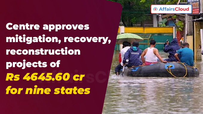 Govt Approved Mitigation, Recovery and Reconstruction Projects worth over Rs 4,600 Crore across 9 States