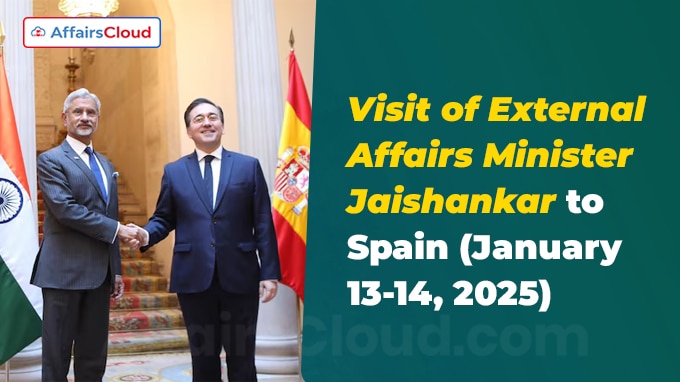 Union Minister S. Jaishankar, Ministry of External Affairs(MEA) made a 2-day visit to Spain from January 13th to 14th, 2025 which marks his second visit to Spain and first visit as External Affairs Minister(EAM).