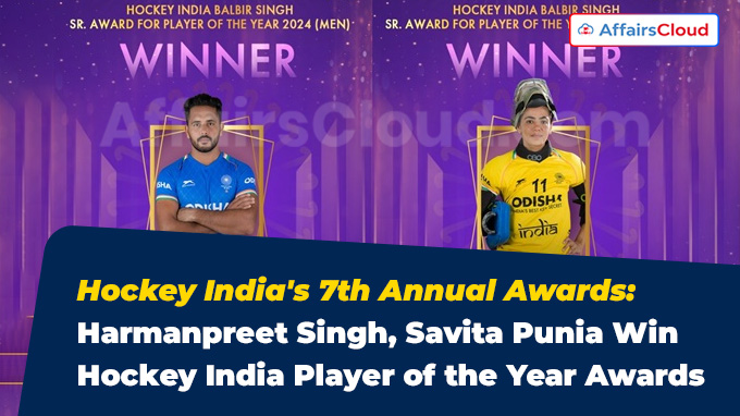 - The 7th edition of the Hockey India Annual Awards(2024) was organised to commemorate 100 years of Indian hockey and to celebrate India’s historic World Cup triumph in 1975 in Kuala Lumpur, Malaysia.