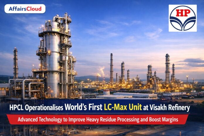 On January 5, 2026, Hindustan Petroleum Corporation Limited (HPCL), under the Ministry of Petroleum and Natural Gas (MoPNG), successfully commissioned the world’s first and largest Liquid Conversion–Maximum (LC-Max) Residue Upgradation Facility (RUF) at its Refinery in Visakhapatnam (Vizag), Andhra Pradesh (AP).