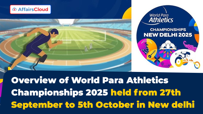 The 12th edition of the World Para Athletics Championships (WPAC)2025, held at Jawaharlal Nehru Stadium, New Delhi, Delhi from 27th September to 5th October 2025. India became the first country in South Asia to host the prestigious championship.