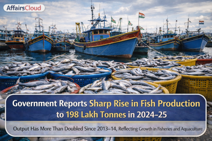 - What? India’s fish production doubled in a decade to 197.75 lakh tonnes (FY25).