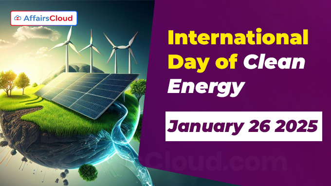 • The 1st-ever International Day of Clean Energy was celebrated on 26th January 2024.