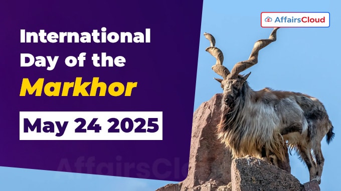 The United Nations (UN)’s International Day of the Markhor is observed annually across the globe on 24th May to raise global awareness about the ecological significance and conservation needs of the markhor (Capra falconeri), a wild goat species found in the mountainous regions of Central and South Asia including Afghanistan, India, Pakistan, Tajikistan, Turkmenistan, and Uzbekistan.
