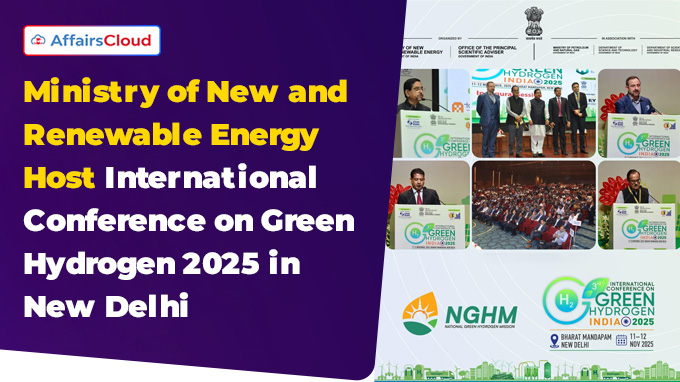 The Ministry of New and Renewable Energy (MNRE) hosted the 3rd International Conference on Green Hydrogen (ICGH 2025) held from November 11 to November 12, 2025 at Bharat Mandapam in New Delhi, Delhi.