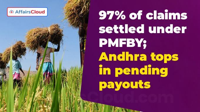 According to the Ministry of Agriculture and Farmers Welfare (MoA&FW) data presented to the Lok Sabha (the Lower House of the Parliament) in April 2025, 97% i.e. Rs 1,34,353 crore of all reported claims (Rs 1,38,401crore) under the Pradhan Mantri Fasal Bima Yojana (PMFBY) and the Restructured Weather Based Crop Insurance Scheme (RWBCIS) have been settled across India.