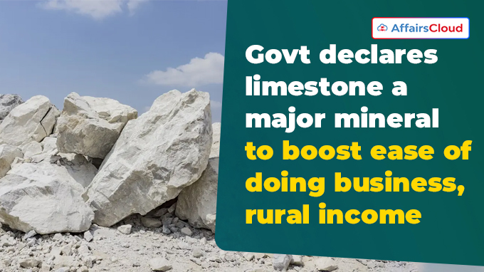 Significance: This classification of limestone as major mineral will enable the leaseholders to freely sell the mineral to cement and other industries, which will boost rural incomes and promote ease of doing business.