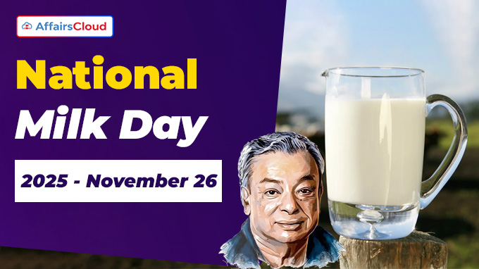 • 26th November 2025 marks the observance of the 12th National Milk Day and 104th Birth anniversary of Verghese Kurein.