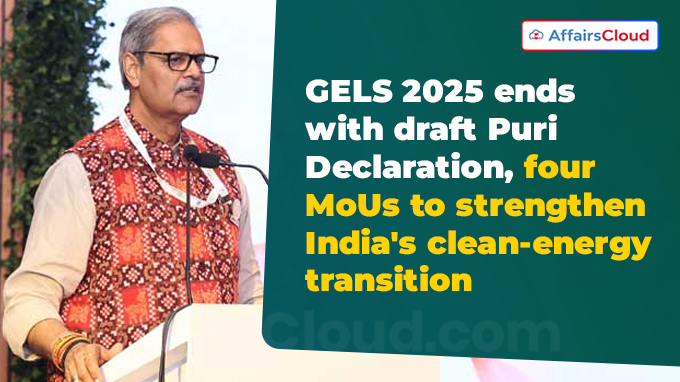 Draft Puri Declaration: The Draft Puri Declaration was unveiled at the conclusion of the GELS 2025. It is designed as a framework for coordinated clean-energy transition across Indian states and is currently under consultation with participating states before being finalized.