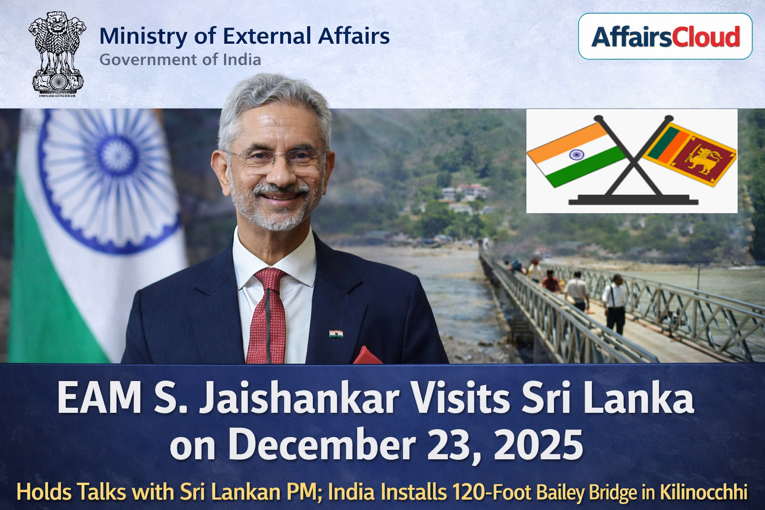 On December 23, 2025, Union Minister Dr. S. Jaishankar, Ministry of External Affairs (MEA), visited Sri Lanka as Prime Minister (PM) Narendra Modi’s Special Envoy, in the wake of catastrophic Cyclone Ditwah, which caused widespread deaths, displacement and infrastructure across Sri Lanka.