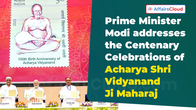 ii.As part of the celebration, PM Narendra Modi also launched a biographical volume, detailing Acharya Vidyanand’s renunciatory path, literary works, institutional efforts, and role as a reformer.