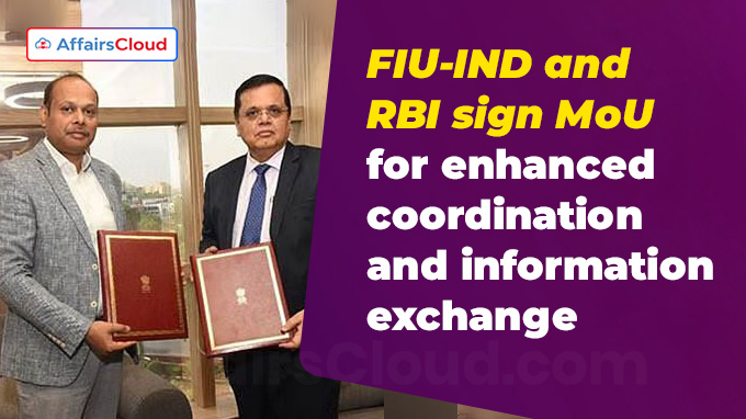 - The MoU was signed by Vivek Aggarwal, Director of FIU-IND, and R. Laksmi Kanth Rao, Executive Director (ED) of the Department of Regulation, RBI.