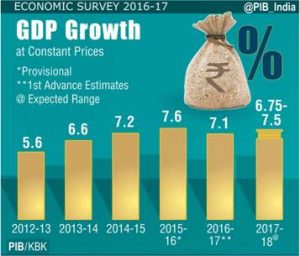 The Economic Survey has estimated that the GDP growth rate for FY18 will be in the range of 6.75 percent to 7.5 percent.