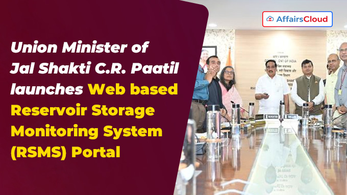 On April 03, 2025, Union Minister C.R. Patil, Ministry of Jal Shakti (MoJS)  launched three key digital initiatives : Web based  ‘Reservoir Storage Monitoring System(RSMS)’ portal, a Water Resource Census Application(app) and portal at Shram Shakti Bhavan in New Delhi, Delhi.