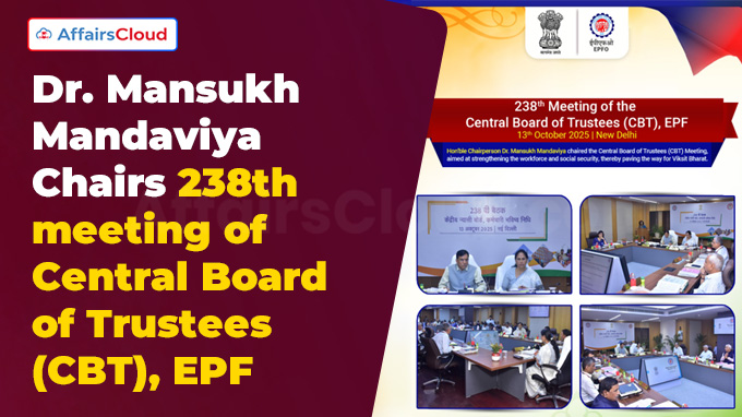 In October 2025, Union Minister Dr. Mansukh Mandaviya, Ministry of Labour & Employment (MoL&E) chaired the 238th meeting of the Central Board of Trustees (CBT), Employees’ Provident Fund (EPF) in New Delhi, Delhi.