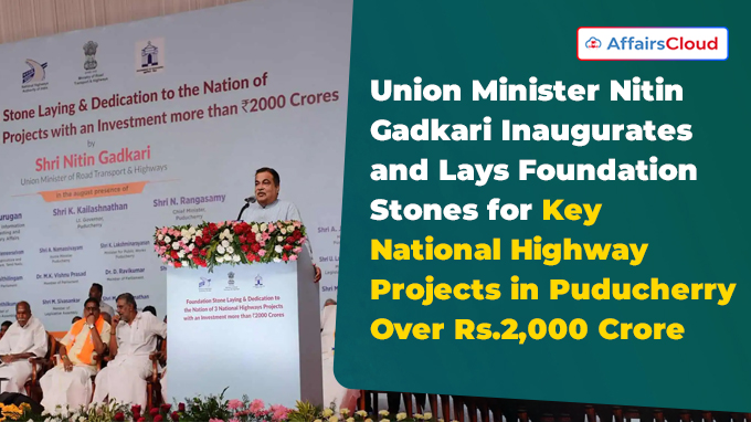 In October 2025, Union Minister Nitin Gadkari, Ministry of Road, Transport & Highways (MoRTH), inaugurated and laid foundation stone for 3 key National Highway (NH) projects worth over Rs 2,000 crore in Union Territory (UT) of Puducherry.