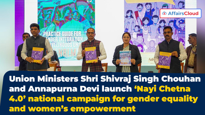 On November 25, 2025, Union Minister Shivraj Singh Chouhan, Ministry of Agriculture and Farmers Welfare (MoAFW), Ministry of Rural Development (MoRD), and Union Minister Annapurna Devi, Ministry of Women & Child Development (MoWCD), launched the fourth edition of the “Nayi Chetna-Initiative for Change”, a nationwide campaign, in New Delhi, Delhi.