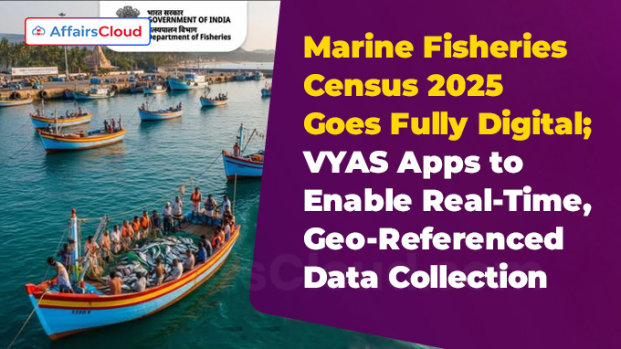 In October 2025, Union Minister of State (MoS) George Kurian, Ministry of Fisheries, Animal Husbandry and Dairying(MoFAH&D) launched the 5th Marine Fisheries Census (MFC 2025) Household Enumeration along with two digital mobile applications(apps) ‘Village-Jetty Appraisal Navigator(VyAS)–BHARAT’ and ‘VyAS–SUTRA’ at the Indian Council for Agricultural Research(ICAR)-Central Marine Fisheries Research Institute (CMFRI) in Kochi, Kerala.