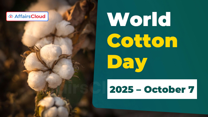 The United Nations (UN) annually observes World Cotton Day (WCD) on 7 October to emphasize cotton’s key role in economic growth, global trade, and poverty reduction.